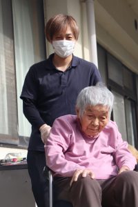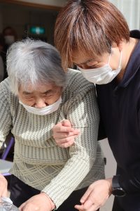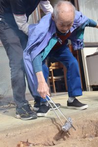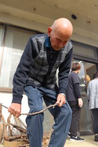 利用者様には、火起こしや枯れ木を切る手伝いをやっていただいたり、