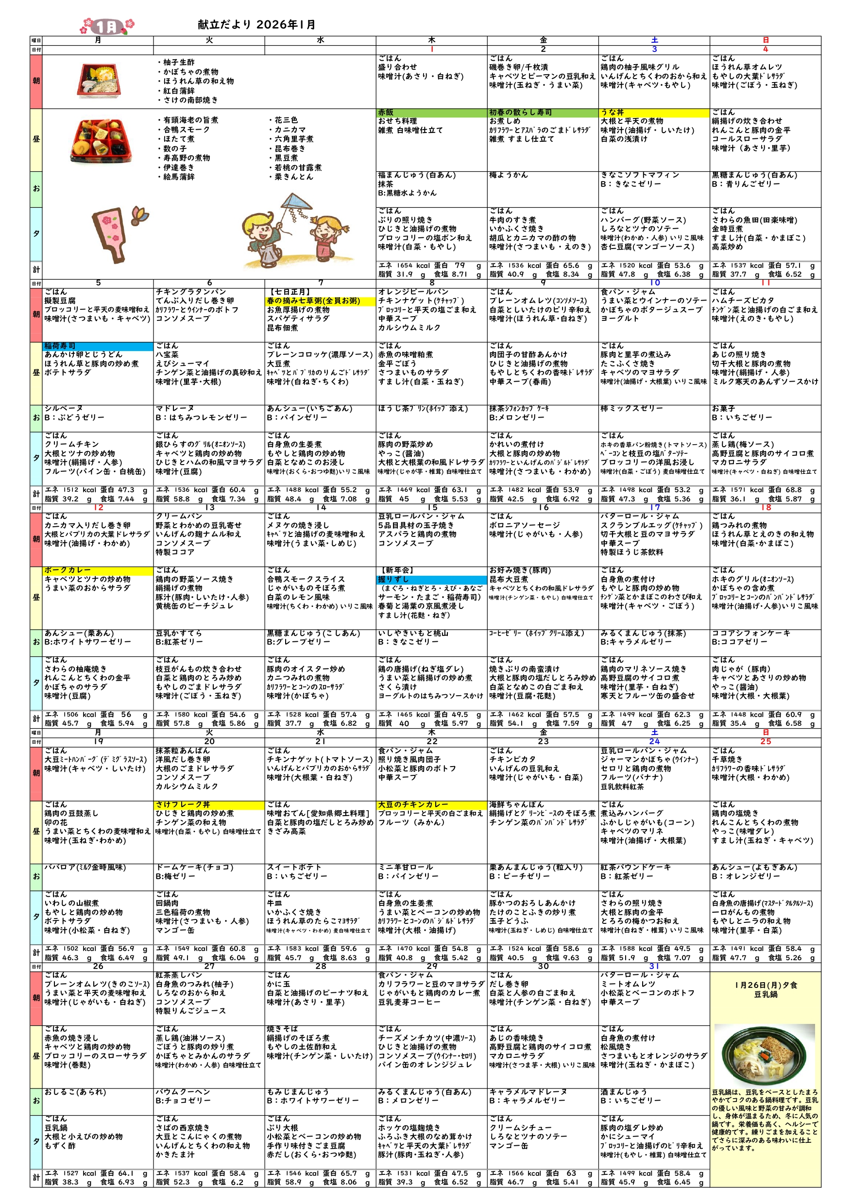 1月 献立表 PDF