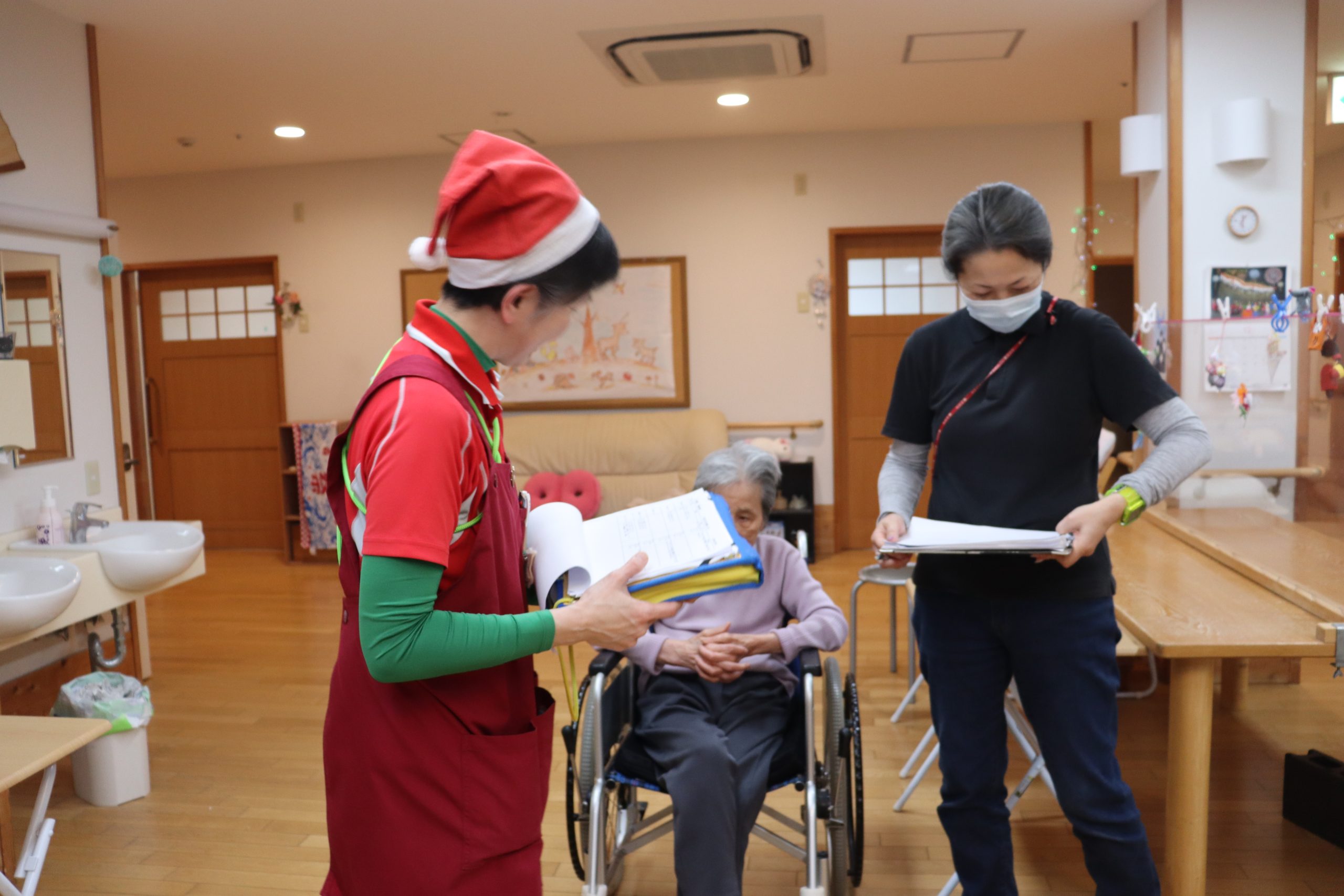 クリスマスの回診ではサンタ帽子で利用者の皆様を診て下さいます。