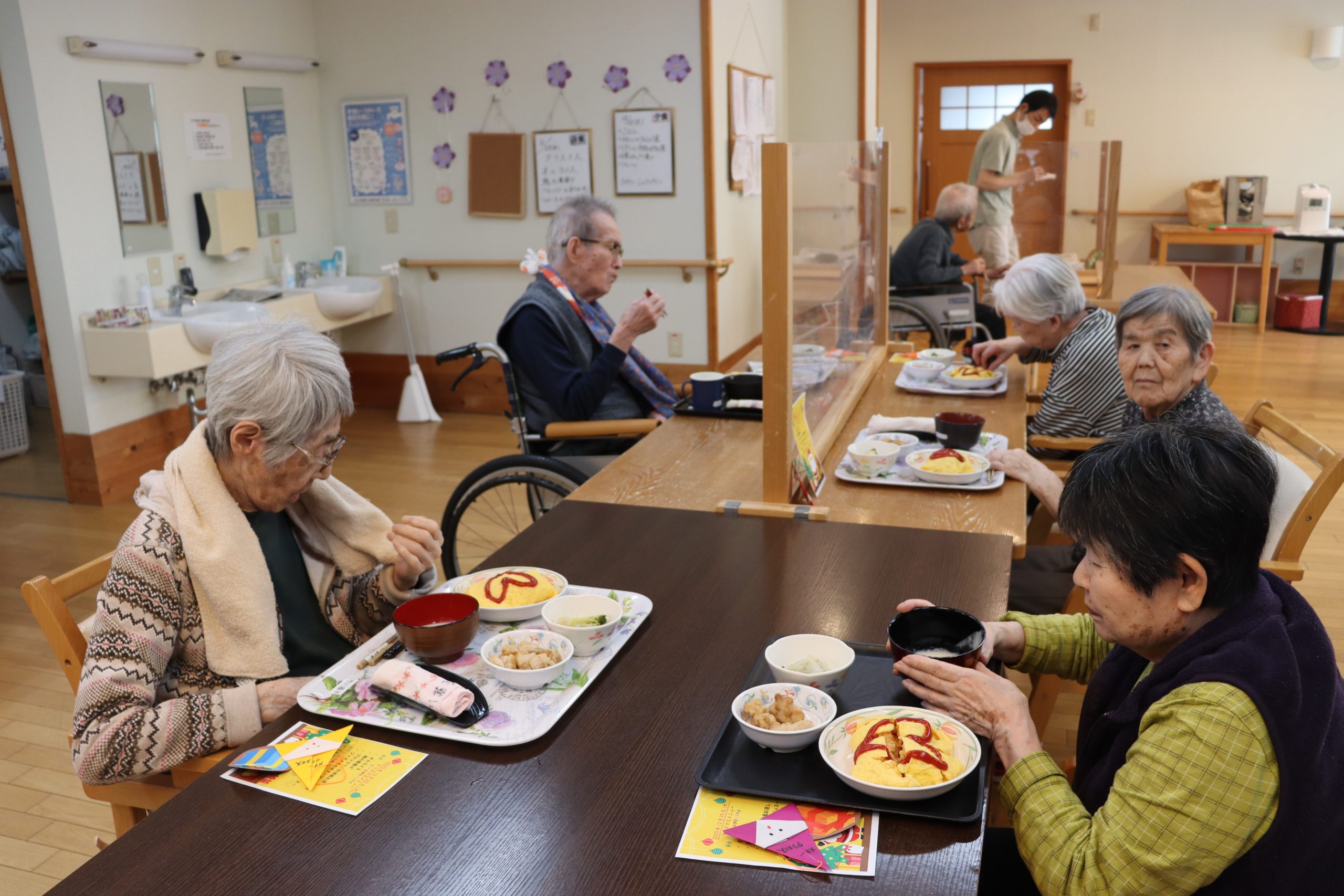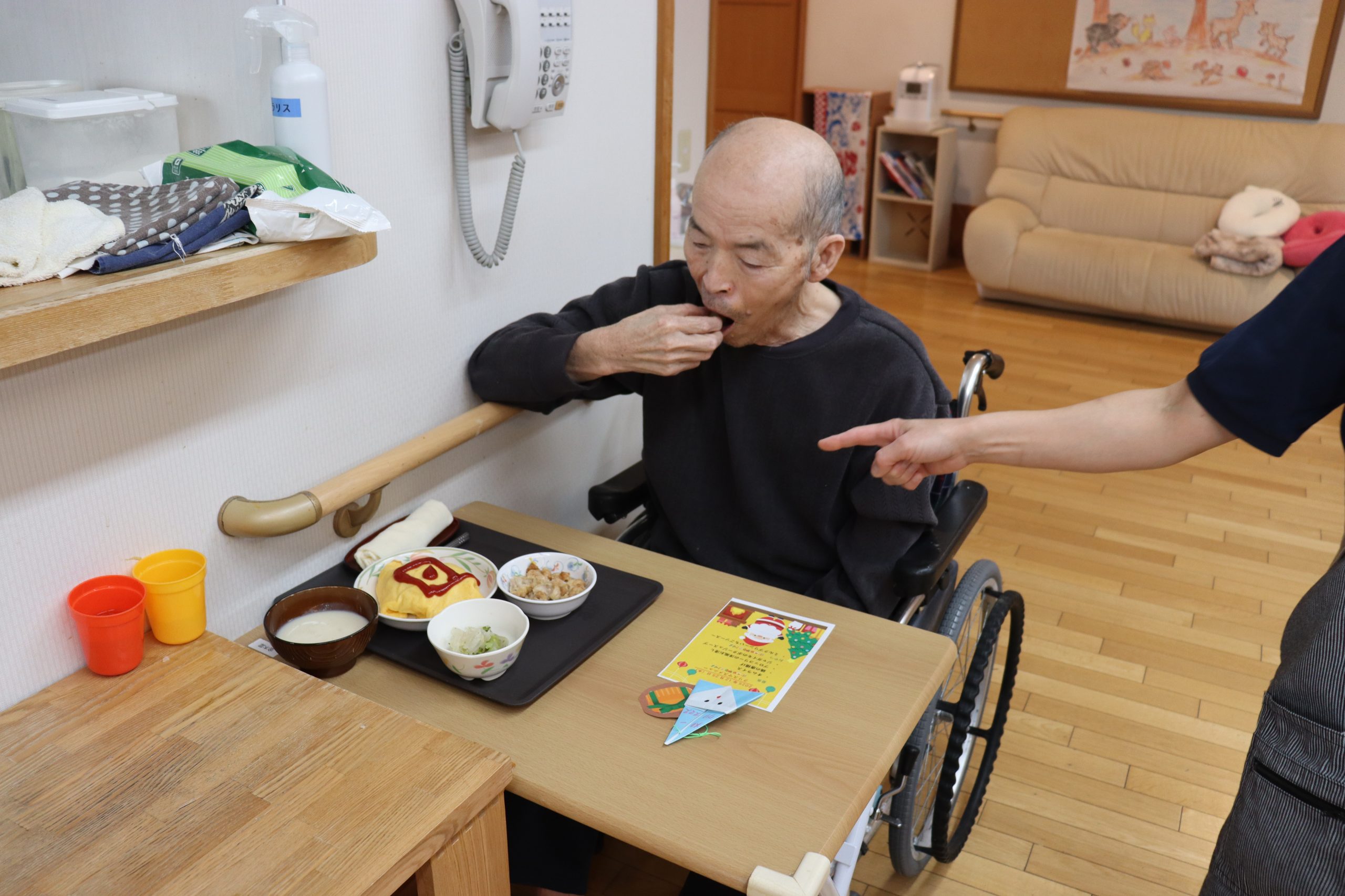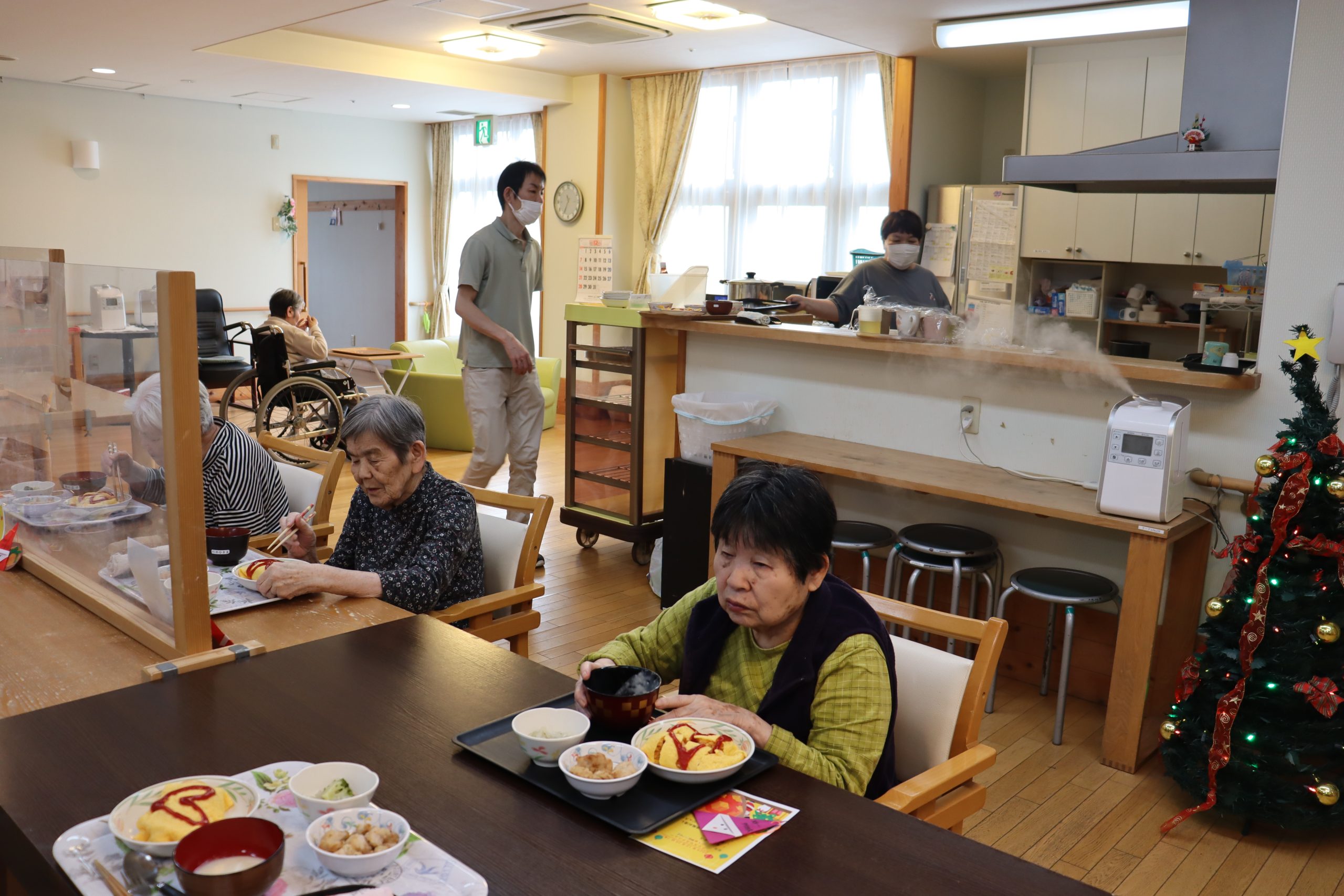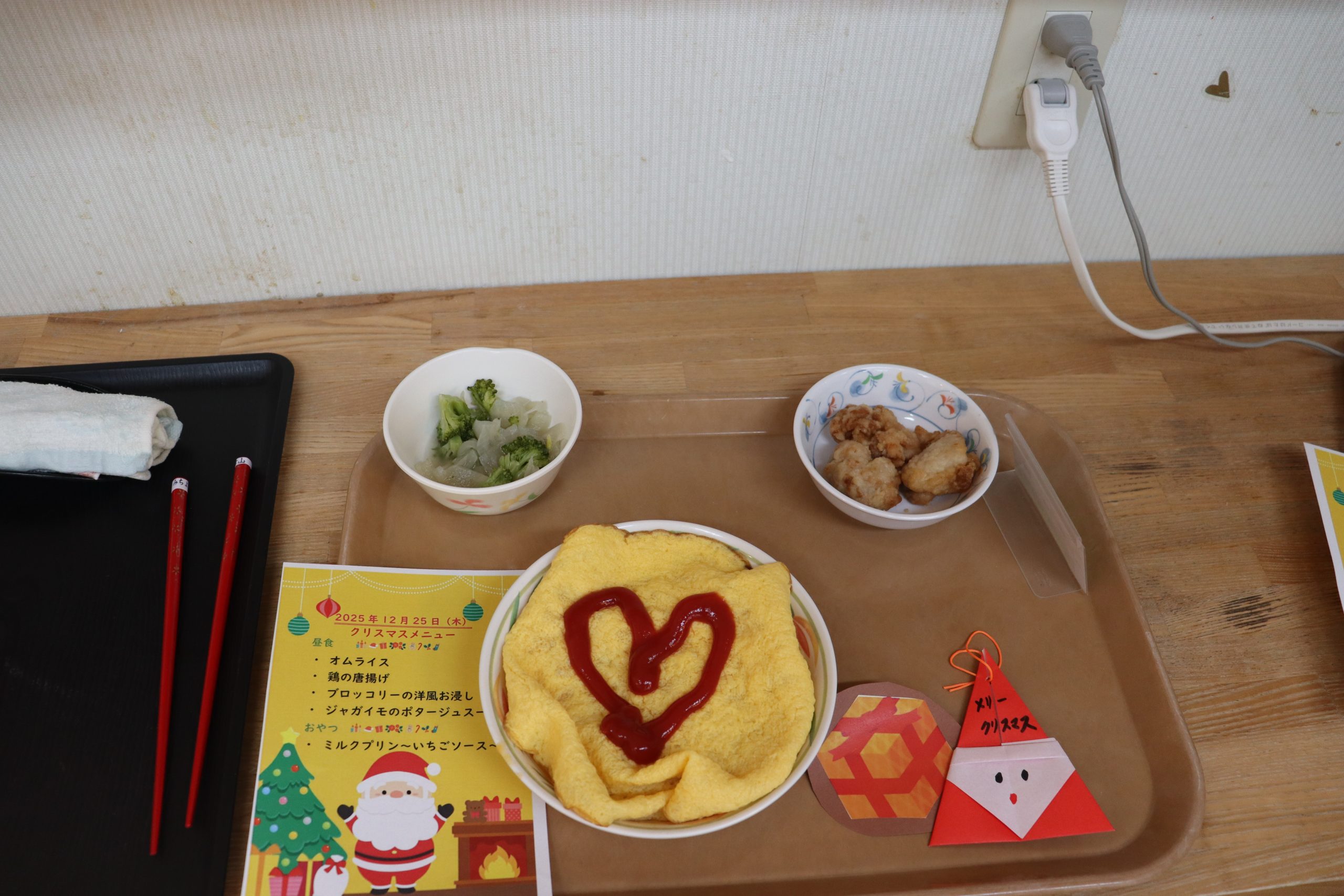 昼食はクリスマス献立でオムライスです。