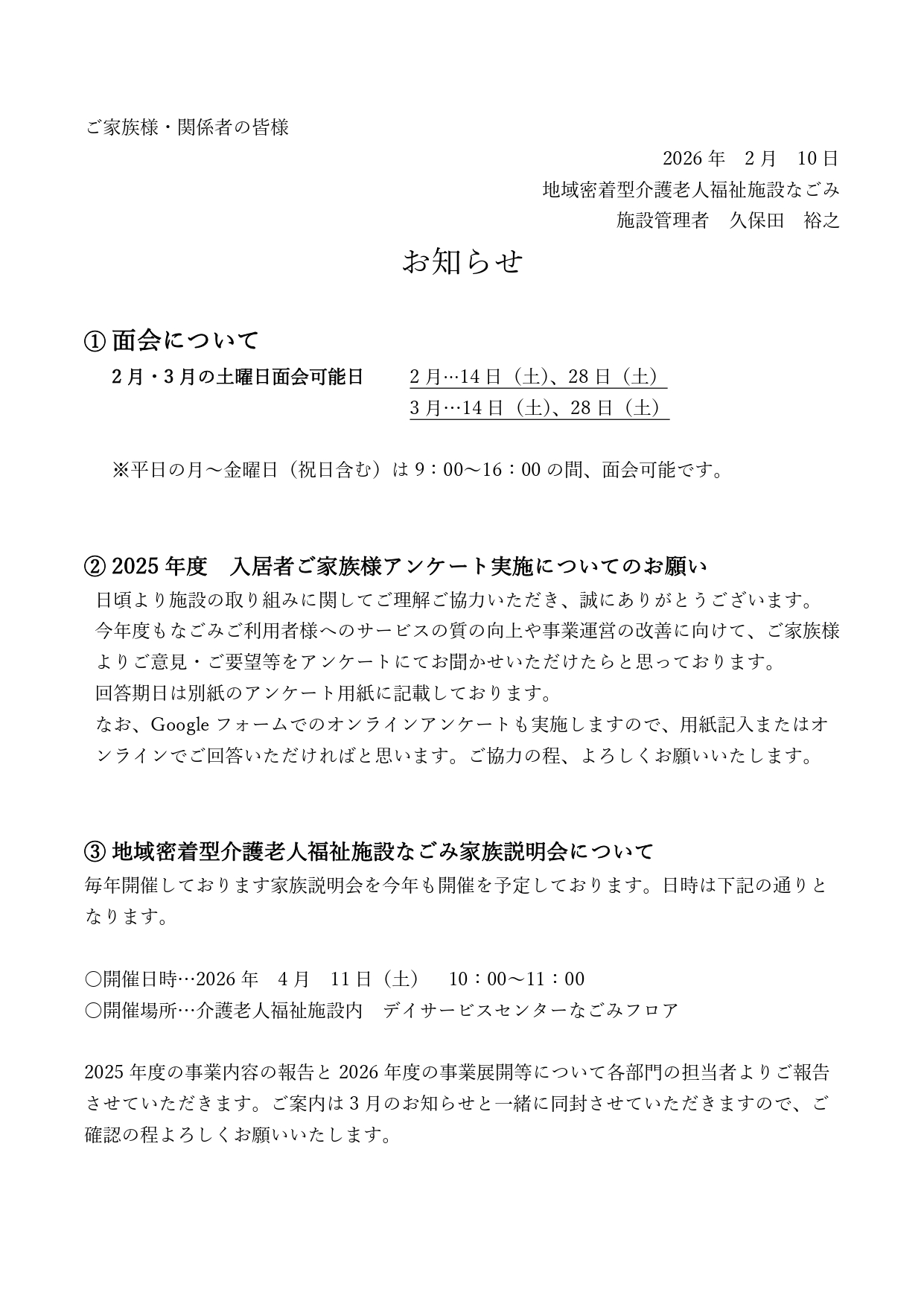 【お知らせ】2026年2月 お知らせ